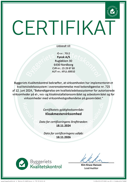 Murer- og Aut. kloakmester Karsten Ellegaard selv er flyttet med over i fynsk a/s, så vi har samtidig sikret os, at arbejdskvaliteten også på disse områder er helt i top.